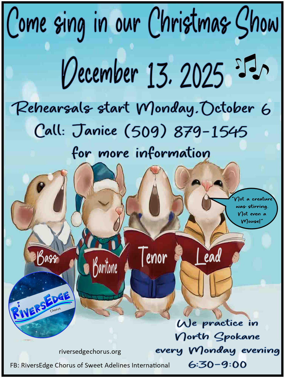 Why not hire RiversEdge Chorus to entertain at your next event? We can perform at corporate functions, charity events, community Entertainment events, birthday parties, christmas parties, awards nights, weddings, engagements, anniversaries, engagements, and even funerals and memorial services.