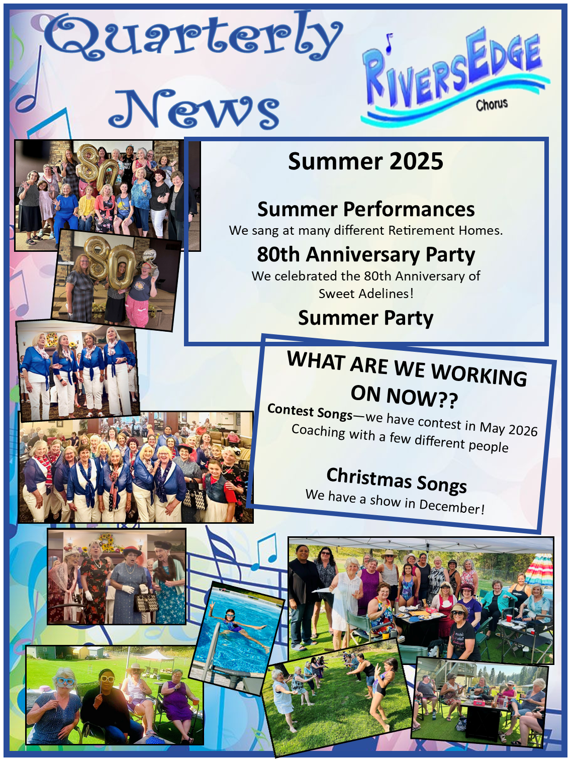 RiversEdge Chorus creates a newsletter periodically to keep our friends, supporters and followers up-to-date with the activities and events of the chorus. It is delivered via our friends email mailing list.